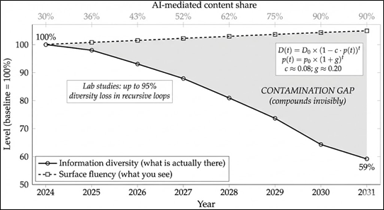 Figure 4. The Compounding Contamination Gap: Information Diversity vs. Surface Fluency, 2024-2031.